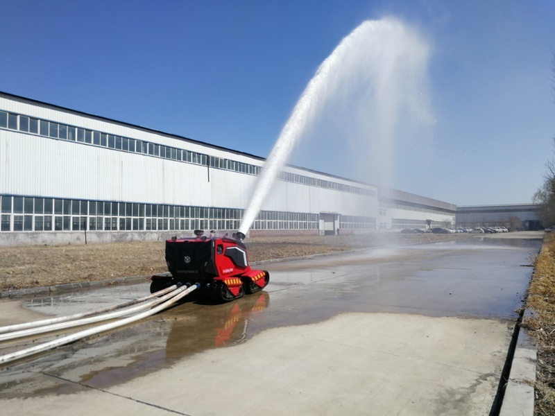 本產(chǎn)品采用四驅(qū)履帶輪式全地形越野底盤,具有超高上下樓梯平衡性能和越野性能,整機尺寸小,重心低,最大爬坡角度40°,垂直越障≥400mm,整機配備TFT季風(fēng)120L水、泡沫炮,最大射程水90m,混合液80m,具有很強的抗電磁干擾性。