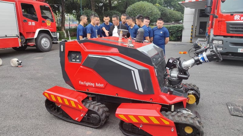 在演示活動(dòng)上,我公司自主研發(fā)的全地形消防滅火機(jī)器人,通過(guò)全程智能化遙控操作,可以更好的完成現(xiàn)場(chǎng)救災(zāi)滅火任務(wù)。四履帶獨(dú)立驅(qū)動(dòng),可以全地形移動(dòng),360度原地調(diào)頭,同時(shí)還可以實(shí)現(xiàn)高空出水等諸多高難度動(dòng)作,具有靈活、高效、安全的特點(diǎn)。