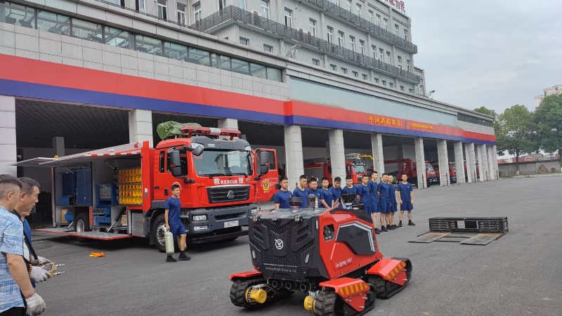 2022年6月末公司領(lǐng)導(dǎo)及銷售經(jīng)理帶著公司兩款主打產(chǎn)品——舉升搶險(xiǎn)主戰(zhàn)消防車和全地形消防滅火機(jī)器人在重慶總隊(duì)、貴陽(yáng)總隊(duì)及各支隊(duì)進(jìn)行巡展演示。
